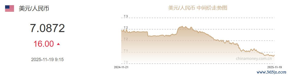 11月19日人民币对美元中间价报7.0872元 下调16个基点有富策略