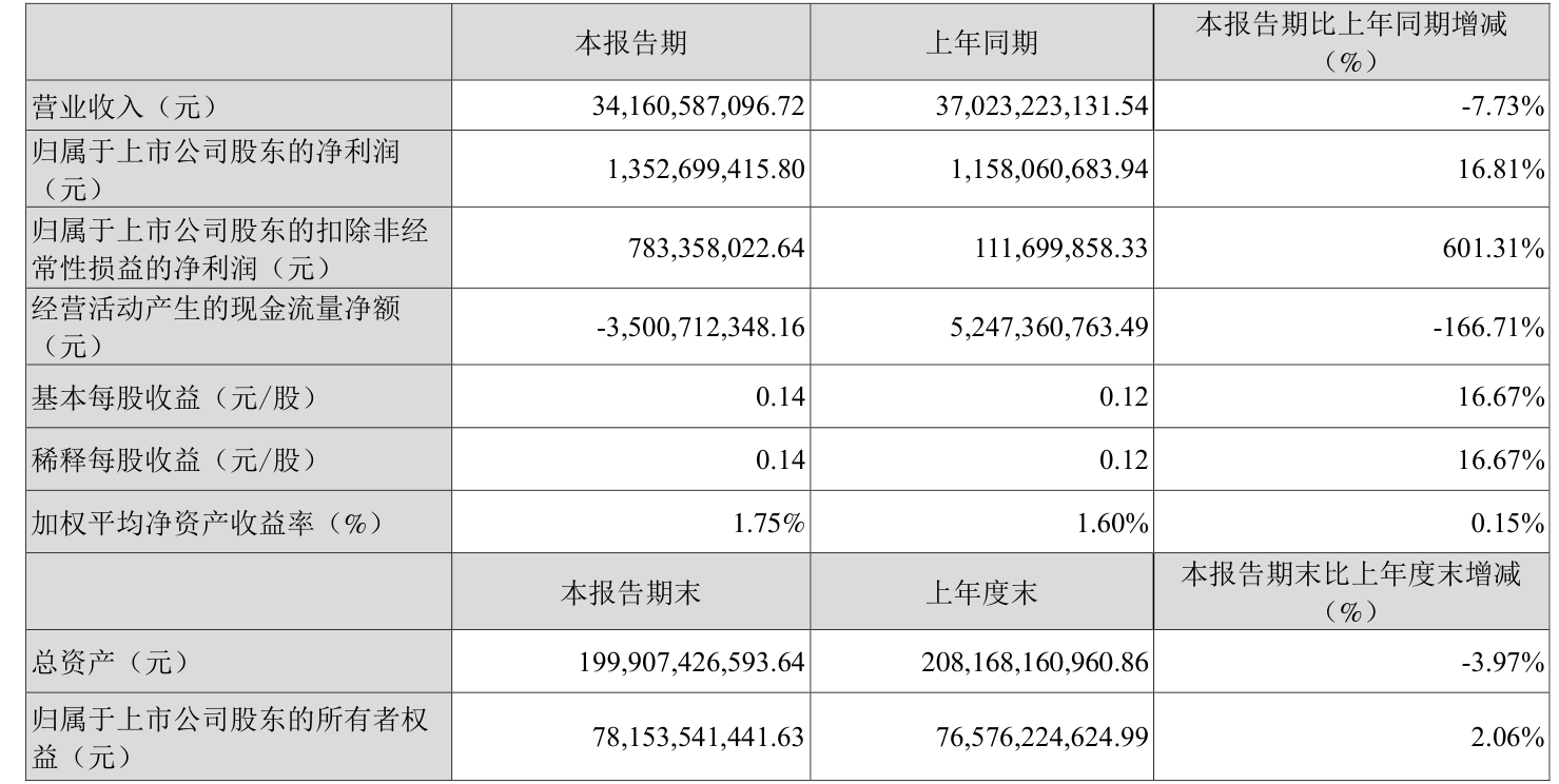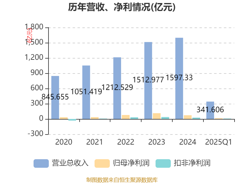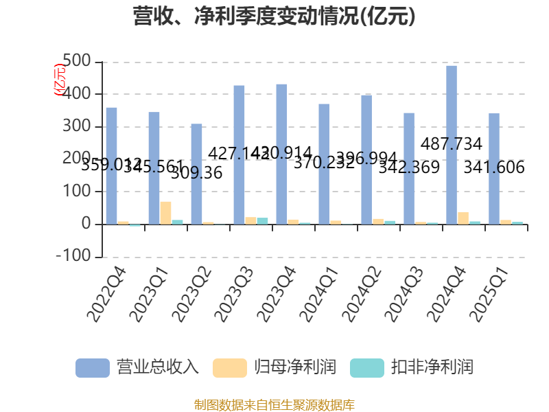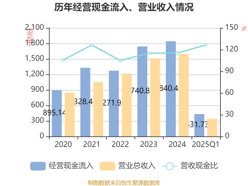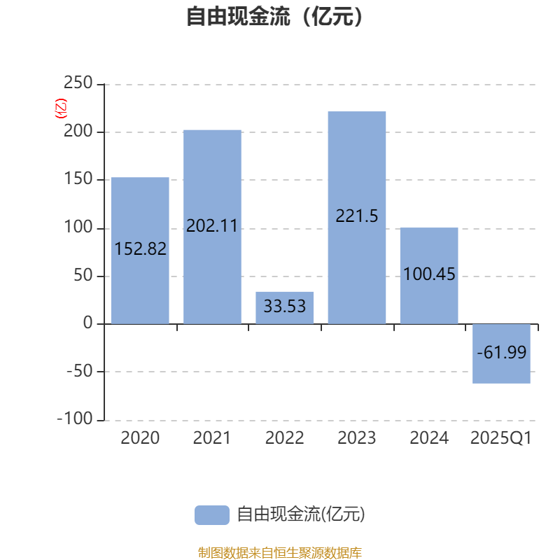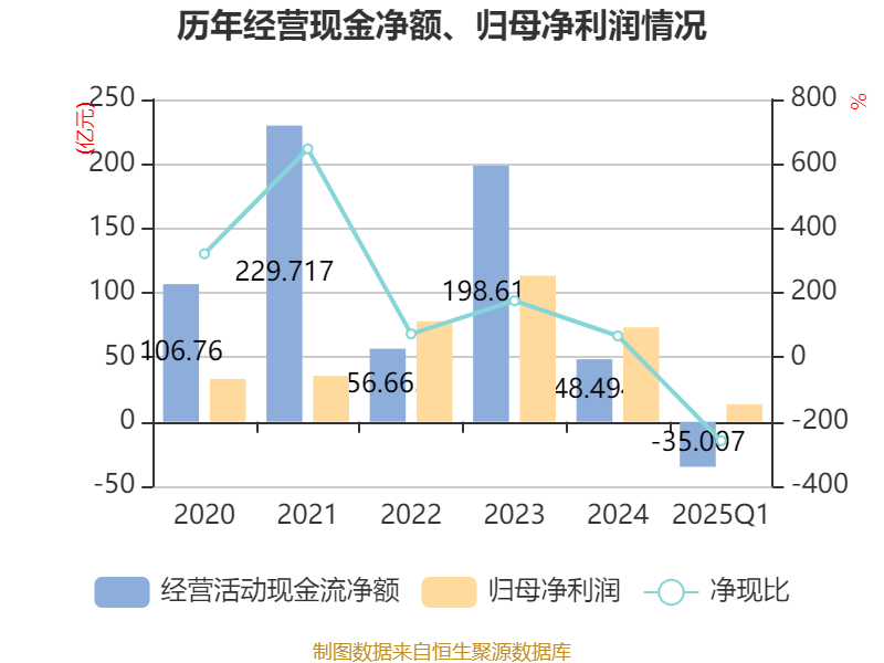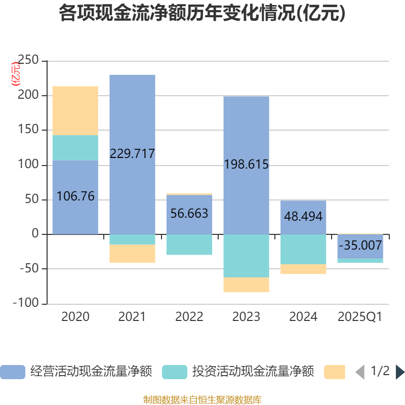 截至2025年一季度末,公司经营活动现金流净额为-35.01亿元,同比减少87.48亿元;筹资活动现金流净额9291.96万元,同比增加5417.1万元;投资活动现金流净额-6.03亿元,上年同期为-313.66万元。