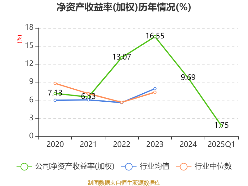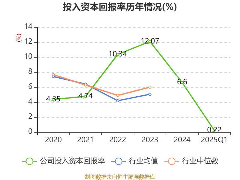 盈利能力方面, 2025年一季度公司加权平均净资产收益率为1.75%,同比上升0.15个百分点。公司2025年第一季度投入资本回报率为0.22%,较上年同期下降0.52个百分点。