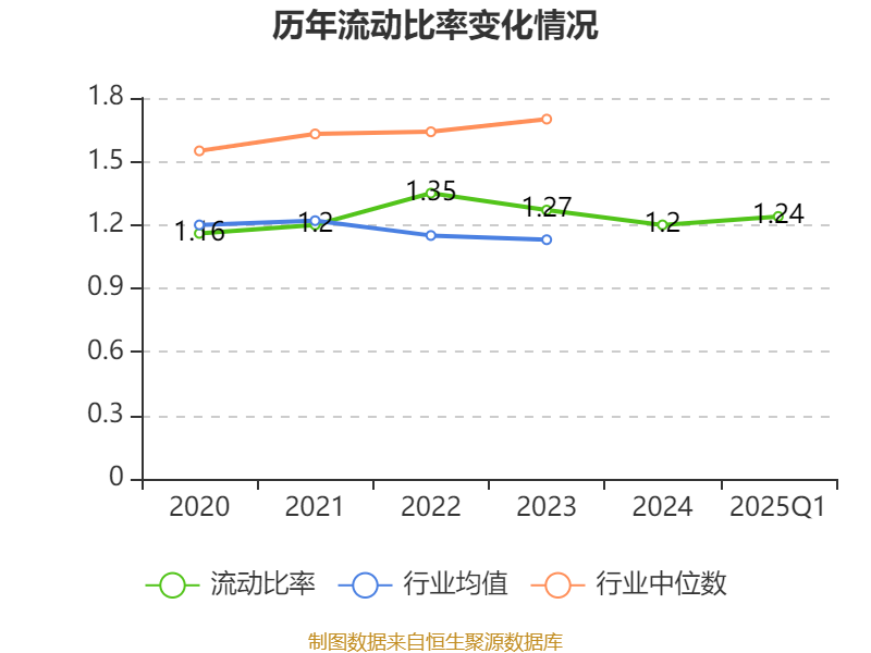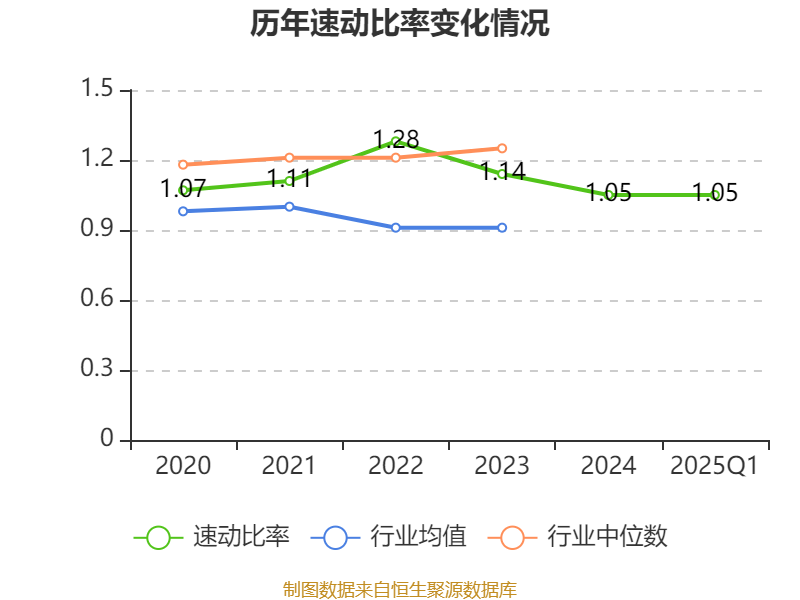 2025年第一季度,公司流动比率为1.24,速动比率为1.05。